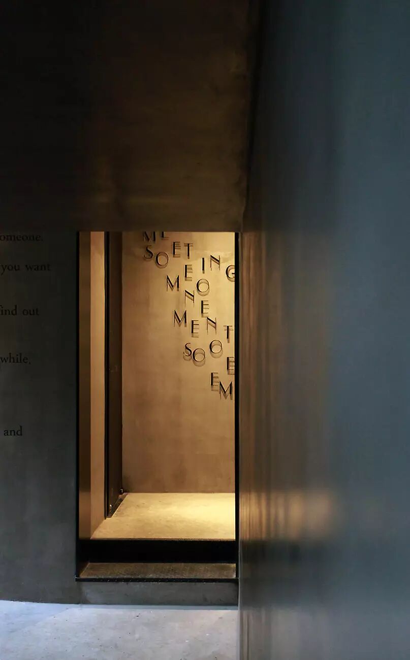 Meeting Someone包含了酒吧、下午茶、餐厅、屋顶露台及一个小小的内院。一部蓝莓之夜的电影一首1874的音乐作为引子,结合建筑、院落本身高低错落的的空间特点,设计师构想了一个充满了时空交错、富有戏剧感的体验之旅。