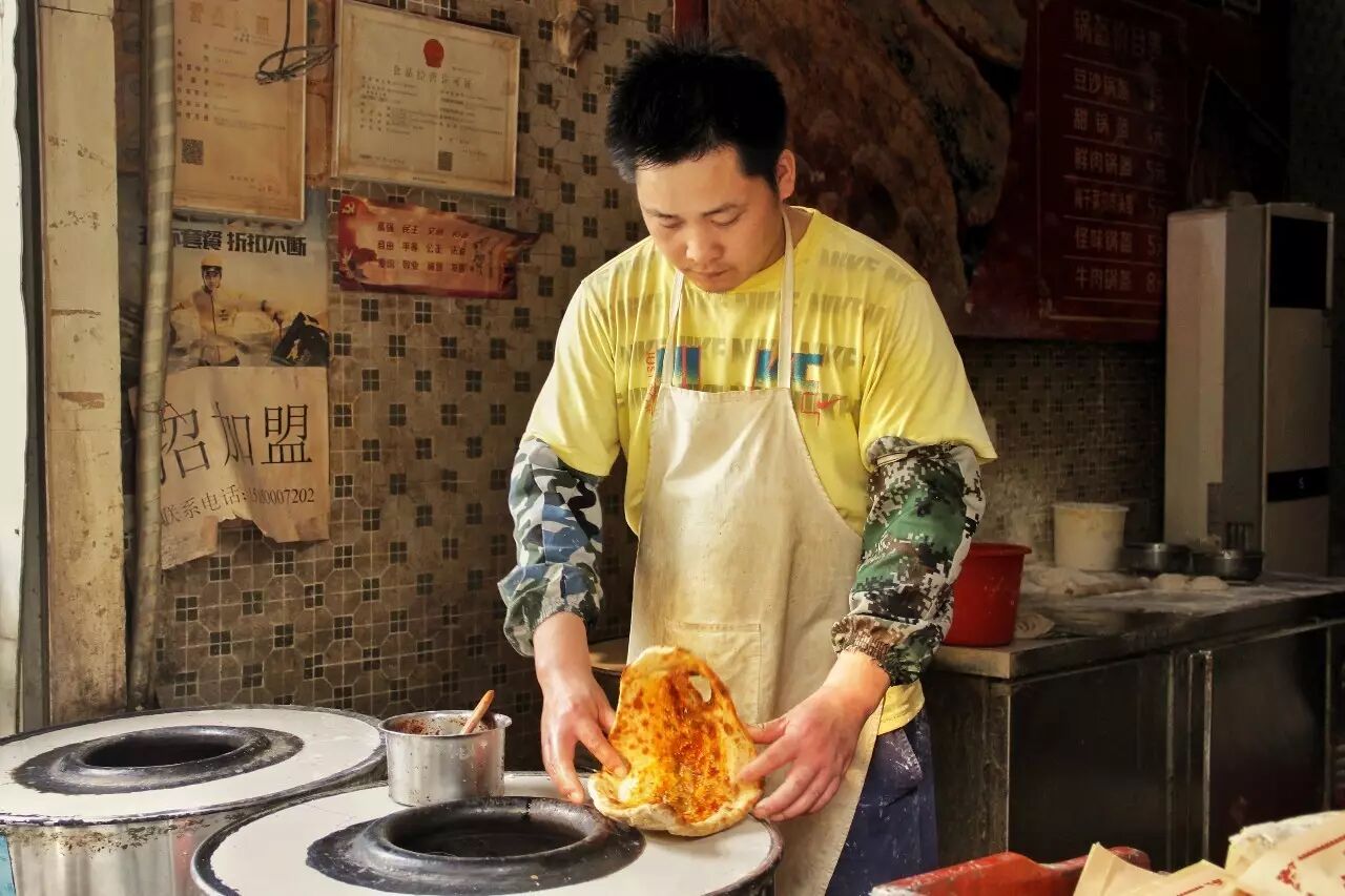 如果让我描述锅盔,他就是一个长得很像烧饼的大饼,像归像,但这饼里可是大有内容,不同的馅子,不同的味道。