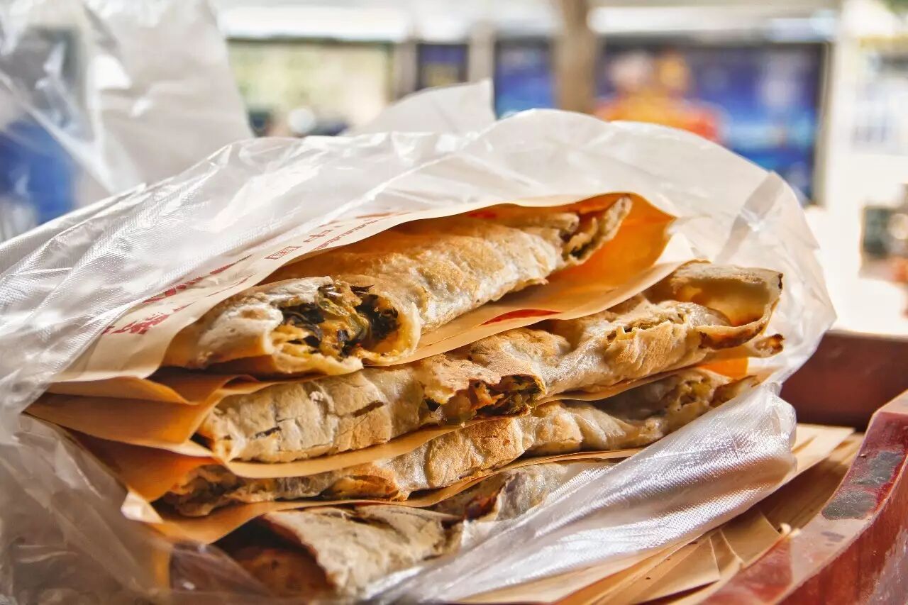 刚做好的大饼,那是又薄又脆,肉陷已经完全融合与面里。买了可要趁热吃,凉了就不脆了。