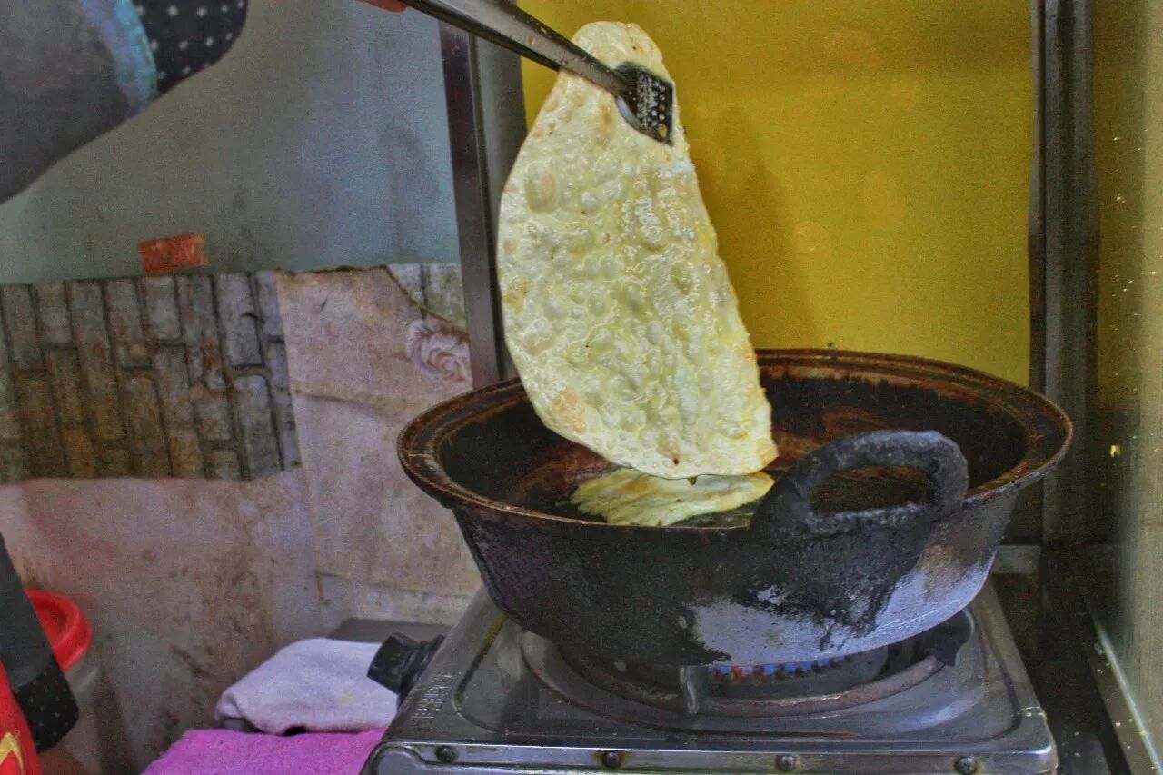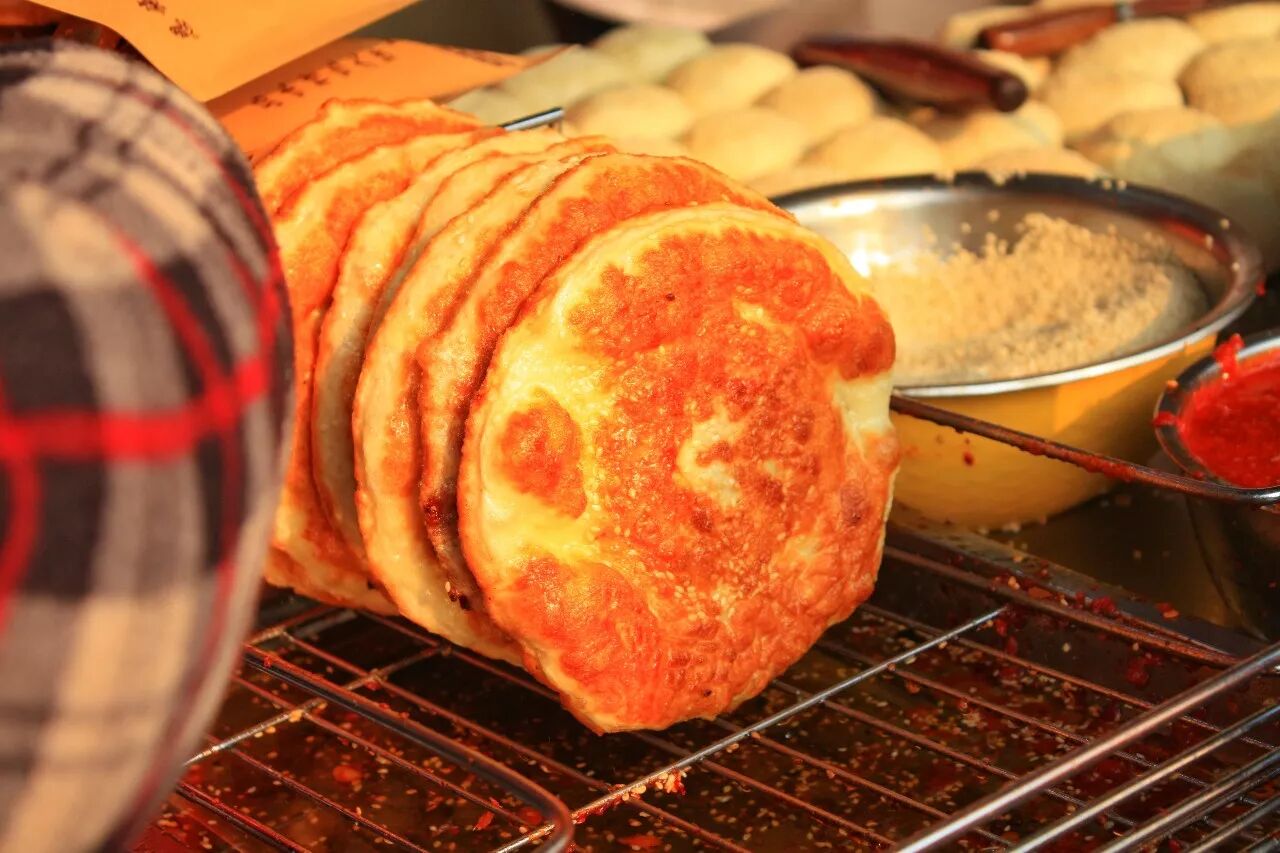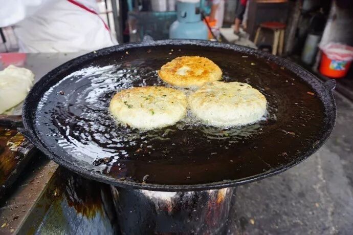 大饼放入油锅里煎制,油香四溢,这是大饼香气灵魂所在,但如果觉得油太多,就让店家把油控制一下。