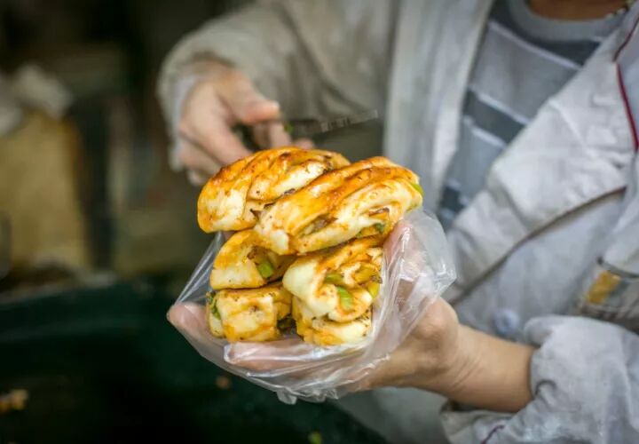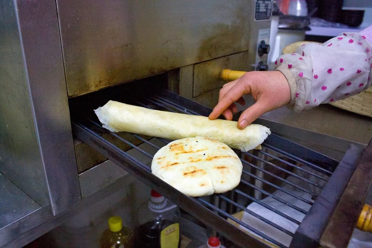 小店是安静的,却又是不知疲惫的,生活匆匆,从日光耀眼到夜晚炉火暖人。刚出锅的辣饼十分美味,又辣又脆!
