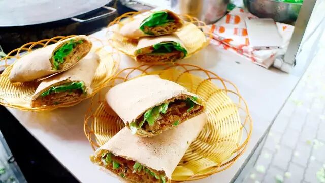 一天最多能卖400个!薄而不碎,香酥可口的薄脆配上翠绿新鲜的生菜,加入煎鸡蛋蘸上辣酱,咬上一口,别提多香了。