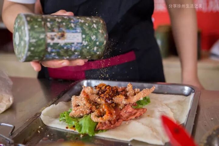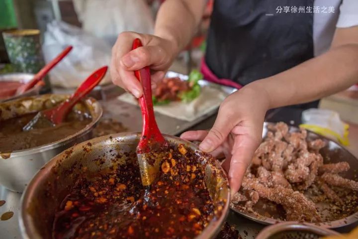 这种做法必然是全徐州独一家,因为我问起店家阿飞这个美食的来历时,他笑着给我说:这是他自己突然想起的小创意。