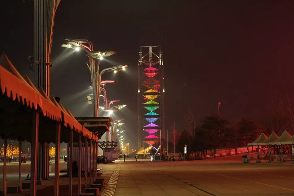 后来在将要回家的前一天去798的路上,看到一辆公共汽车的广告是奥林匹克公园有花灯,而我们竟然不知道,遇见了还生生错过了。
