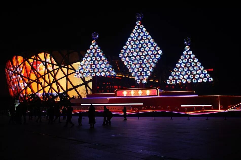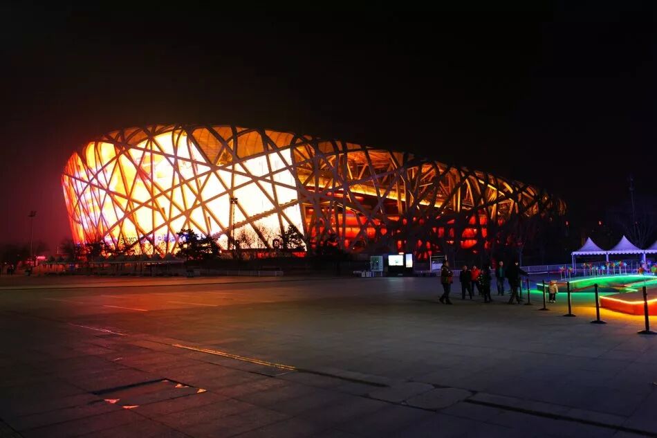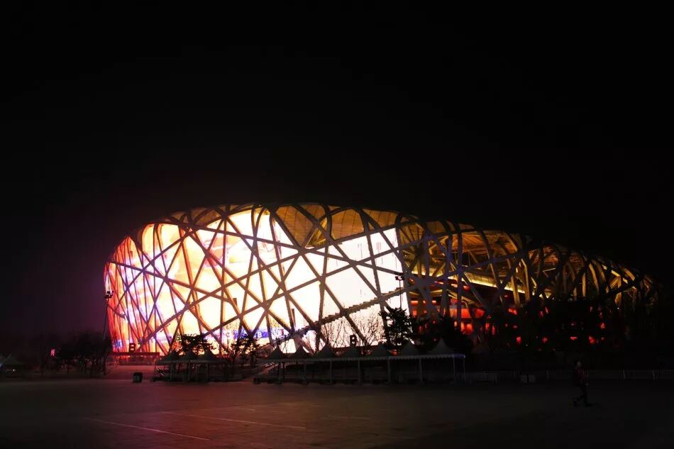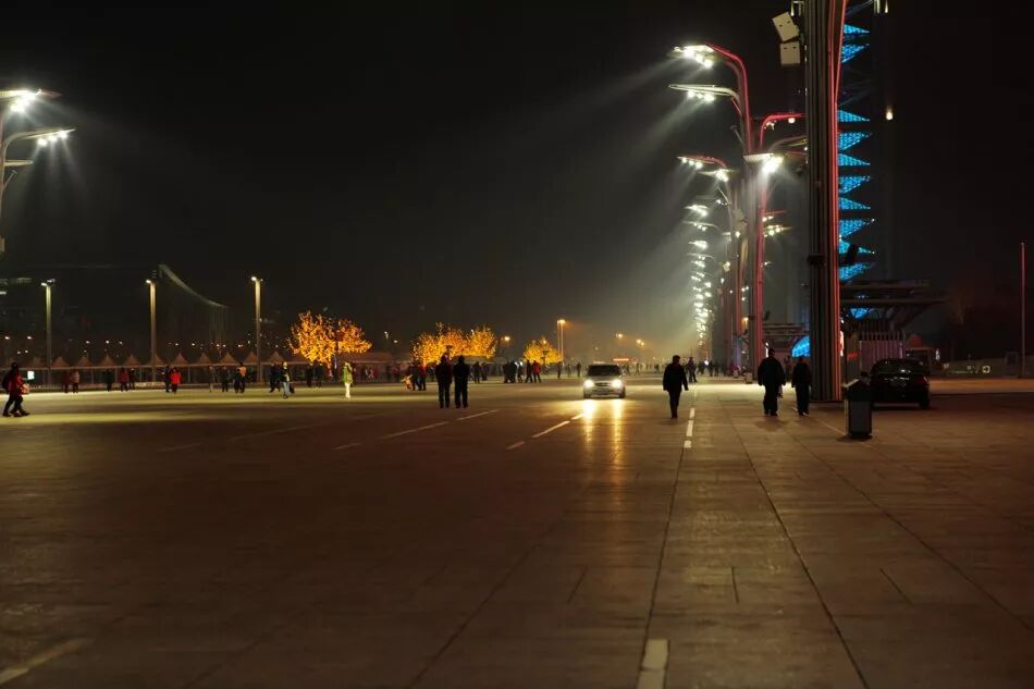 当大家都找一个避风的地方休息的时候,只有我还继续一步一步地挪着,想找个近一点的距离不一样的角度。最后,实在无法坚持而放弃了围着水立方与鸟巢走一圈的想法。