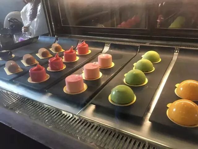 柜子里超可爱心水的蛋糕,客人源源不断,店铺不大,下午高峰期可能要等座。于是我们便在等位间隙看着一批批甜品出炉,充满期待。