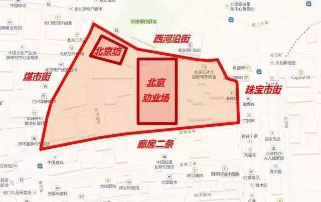 位置:南接东珠市大街,西北出口与大栅栏相接,与鲜鱼口商业街隔路相望