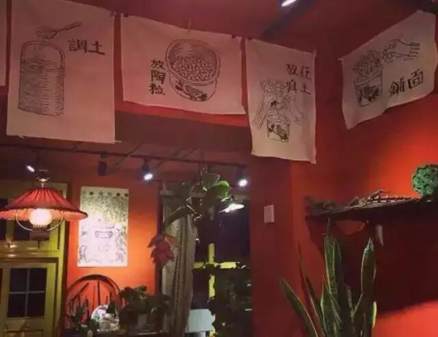 相比常见的小清新风格植物店,红色为主装修调的有种房子,更具备一种粗糙中透着细腻的风格。