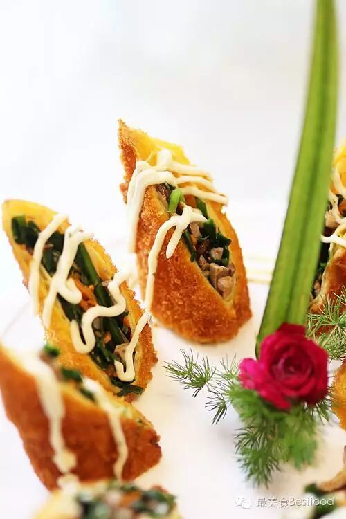 鸭酥卷~京味馆子里常见的菜品,蛋皮中间卷上韭菜、胡萝卜、鸭肉。。外面裹一层面包糠炸成金黄色,表皮酥脆内馅鲜美。