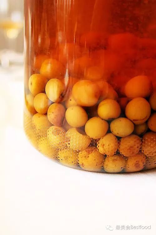 青梅酒~30斤酒需要用50斤青梅来浸泡,喝饱酒水的青梅出酒率并不高,能品尝到都算有口福~有淡淡杏仁香味,很柔和~