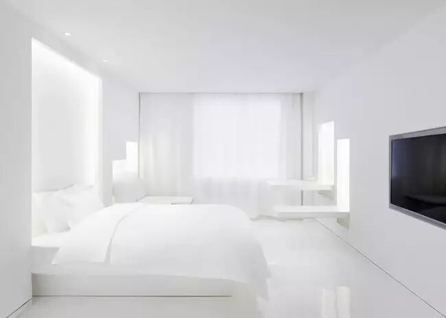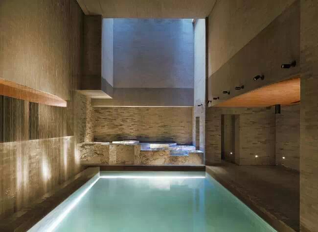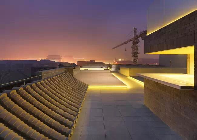 酒店原址为老北京著名的便民浴池兴华园,这里本就与水有着不解之缘,在美国ASAP设计事务所的打造之下,更呈现出一派后现代的冷调与传统人文相结合的冲撞美。大厅在一道水幕之下安静地幽暗着。这道水幕从屋檐而下,沿着一根根细丝慢慢流下来。细丝上悬浮着无土绿植,而它的养殖也正是靠着这个水幕的循环系统来供给。